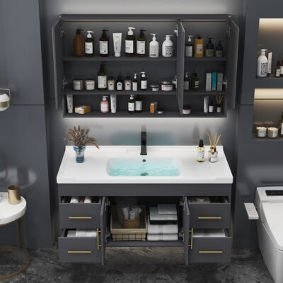 Ánh sáng sang trọng gỗ rắn kết hợp tủ phòng tắm thông minh phòng tắm hiện đại tối giản chậu rửa chậu rửa kết hợp tủ phòng tắm