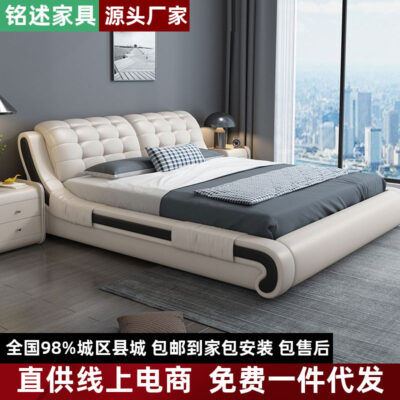 Giường da giường da giường đôi người lớn phòng ngủ chính hôn nhân giường đơn giản hiện đại giường lớn chiếu tatami giường 1,2 mét 1,8 mét
