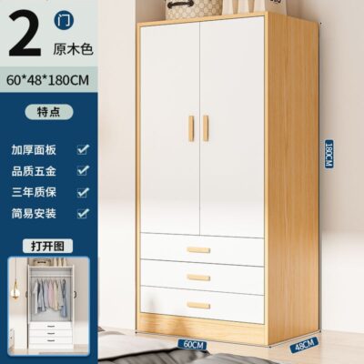 Móc treo quần áo nhỏ gia đình kệ gỗ phòng ngủ tủ quần áo lắp ráp đơn giản nhà cho thuê bền đẹp hai tủ