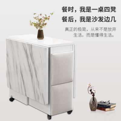 Bàn gấp giả đá cẩm thạch bàn ăn ghế ăn kết hợp hộ gia đình nhỏ bàn tròn bàn ăn di động bàn buổi tối