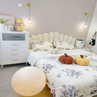 Ban đầu ~ phong cách kem giường vải kẹo bông cừu nhung phong cách tối giản hiện đại phòng ngủ chính giường phồng