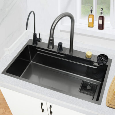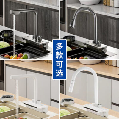 Màn hình kỹ thuật số Raindance Thác nước Bồn rửa nhà bếp Máy rửa chén bằng thép không gỉ Net Red Under-Đài Loan Chậu trồng rau Raindance Khe cắm đơn lớn