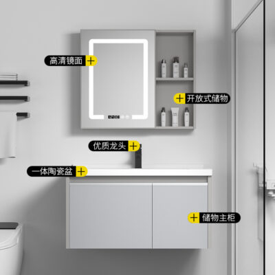 Không gian tối giản hiện đại tủ phòng tắm bằng nhôm tấm đá gốm tích hợp lưu vực kết hợp chậu rửa phòng tắm tủ chậu rửa mặt
