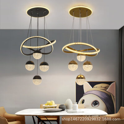 Bán buôn nhà hàng đèn phòng khách khí quyển đèn hiện đại nhỏ gọn sáng tạo thanh phòng ăn ăn uống đèn chùm ba vòng bốn vòng