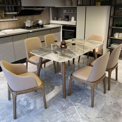 Bàn ăn phiến đá Bàn ăn đá cẩm thạch Bắc Âu Bàn ăn hình chữ nhật và ghế kết hợp gỗ nguyên khối nhà hiện đại căn hộ nhỏ tối giản