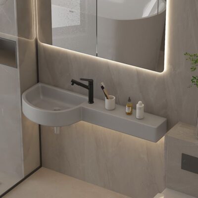 Phòng tắm chung cư nhỏ chậu rửa mặt mini nhân tạo đá thạch anh chậu rửa treo tường kích thước nhỏ đặt bàn tích hợp chậu