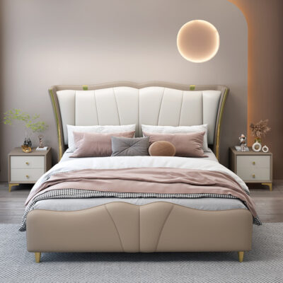 Giường ngủ master màu kem đơn giản hiện đại phòng ngủ master giường vải công nghệ 1.5m gỗ nguyên khối giường đôi êm ái 1.8x2m
