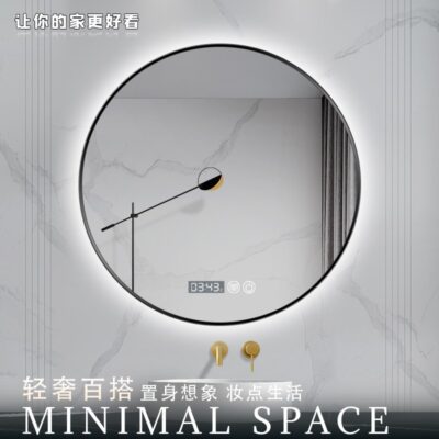 Gương tròn thông minh có khung đèn LED gương phòng tắm khách sạn chống sương mù phát quang toilet trang điểm gương phòng tắm treo tường không đục lỗ