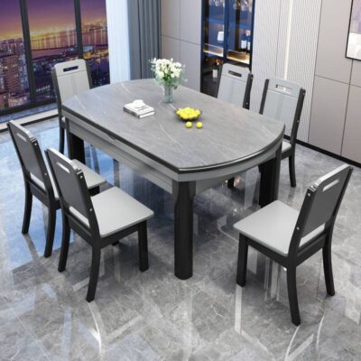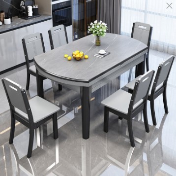 Bộ bàn ghế ăn bằng đá sang trọng tối giản hiện đại kết hợp kính thiên văn gấp với bếp từ gia đình bàn ăn gỗ nguyên khối cỡ nhỏ