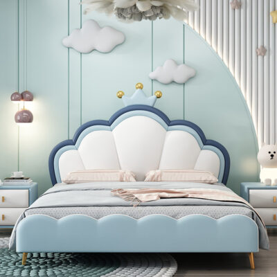 Giường Trẻ Em Tưởng Tượng Cô Gái Vương Miện Giường Công Chúa Thiếu Niên Căn Hộ Nhỏ Ánh Sáng Sang Trọng Đơn Giản Lưu Trữ Ngăn Kéo Bảo Quản Giường Da