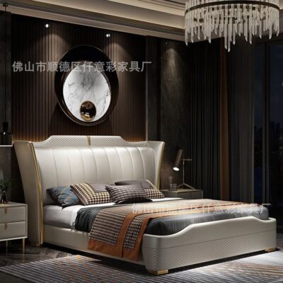Giường da sang trọng ánh sáng hậu hiện đại Phòng ngủ chính sang trọng Giường đôi đơn giản 1,8 mét Giường cưới lưới đỏ mạ vàng cao cấp kiểu Bắc Âu
