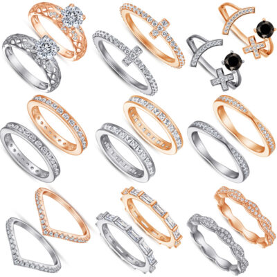 Châu Âu và Châu Mỹ Nữ Hàng Kim Cương Đầy Sao Bạc 925 Đá Quý Nhẫn Không Phai Màu Nhẫn Kim Cương bộ Nhẫn Bán Buôn