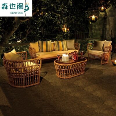Bắc Âu sofa ngoài trời biệt thự sân ban công kết hợp bàn ghế mây ngoài trời khách sạn sofa mây ngoài trời ghế mây