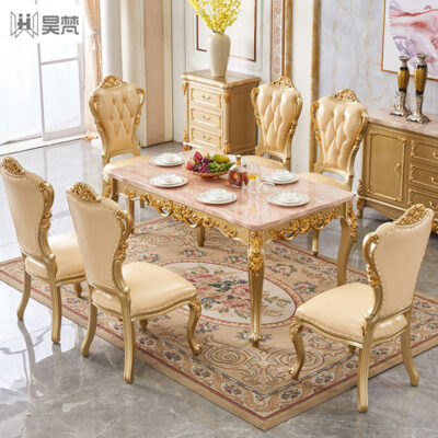 Nhà máy cung cấp trực tiếp bàn ăn kiểu châu Âu và ghế kết hợp gỗ đặc căn hộ nhỏ bàn ăn bằng đá cẩm thạch nhà hàng hộ gia đình bàn hình chữ nhật