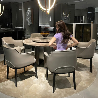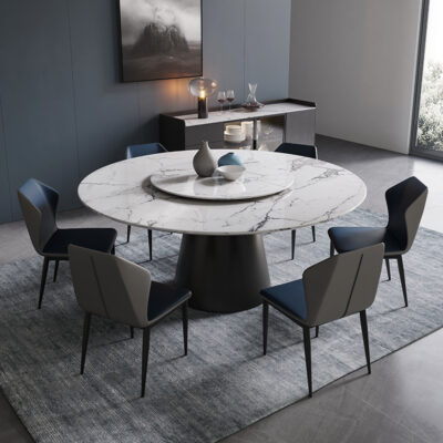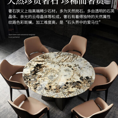 Bàn ăn biệt thự bằng đá tự nhiên sang trọng núi tuyết bay cáo Bộ bàn ghế ăn kiểu Ý kết hợp hiện đại ánh sáng sang trọng Bàn ăn tròn bằng đá cẩm thạch sang trọng