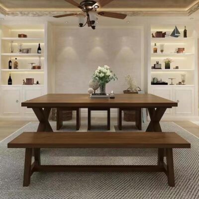 Bàn ăn gỗ đặc Mỹ và ghế kết hợp bàn ăn khúc gỗ cổ điển nhà căn hộ nhỏ bàn ăn nhà hàng bàn hình chữ nhật