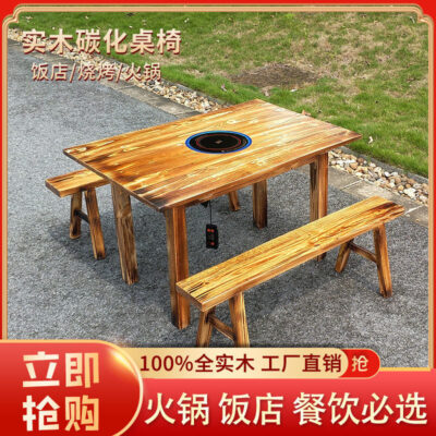 Bàn ghế khách sạn thương mại gỗ hình chữ nhật ăn lẩu bếp từ bàn ăn nhanh bộ bàn ghế