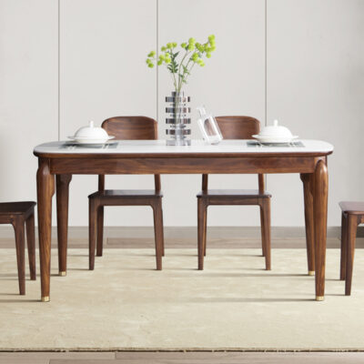 Bắc Âu gỗ đặc phiến đá bàn ăn và ghế hộ gia đình tối giản hiện đại gỗ tần bì màu óc chó mờ bàn ăn gia đình cao cấp