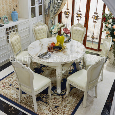 Bàn tròn kính thiên văn bằng đá cẩm thạch đa chức năng theo phong cách châu Âu Nội thất châu Âu đơn giản gấp căn hộ nhỏ kết hợp bàn ăn tròn và ghế