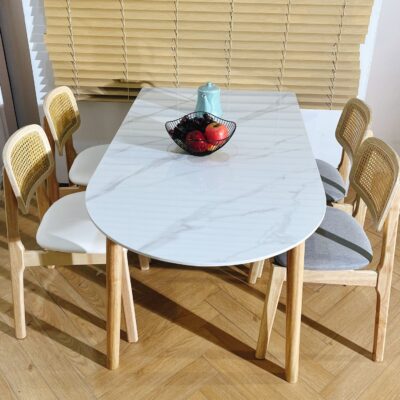 Bàn ăn phiến đá nhà căn hộ nhỏ bàn hình chữ nhật tối giản hiện đại Phong cách Bắc Âu kết hợp bàn ăn đá phiến sáng và ghế