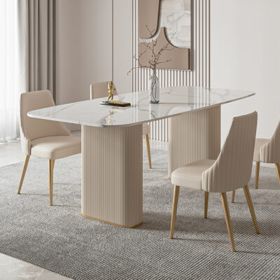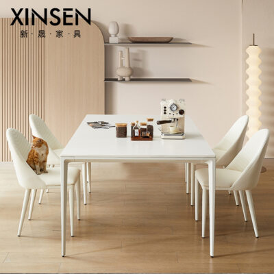 Bàn ăn kết hợp phiến đá sang trọng nhẹ nhà căn hộ lớn và nhỏ hiện đại tối giản bàn ăn hình chữ nhật màu kem phong cách Pháp