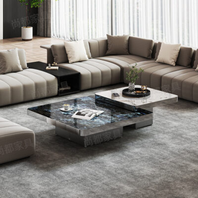Bàn cà phê bằng đá cẩm thạch vi tinh thể mới Kết hợp ánh sáng Sang trọng Tối giản Chủ nghĩa tối giản Phiến đá Hộ gia đình Phòng khách Bàn cà phê Nhà sản xuất