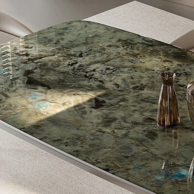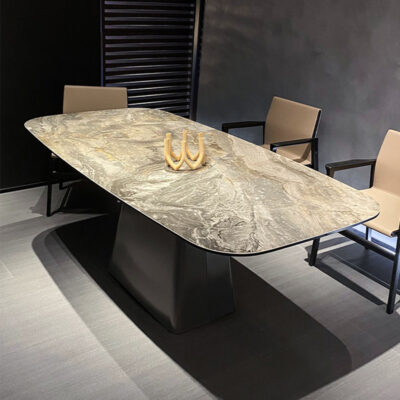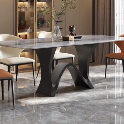 Bàn ăn đá phiến Ý hiện đại tối giản biệt thự hộ gia đình đá vi tinh thể tự nhiên cao cấp kết hợp bàn ăn đá sang trọng hình chữ nhật