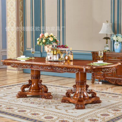 Bàn ăn kiểu châu Âu bàn ăn hình chữ nhật chạm khắc bàn lớn gia đình sang trọng một bàn tám ghế nội thất nhà hàng