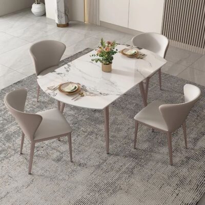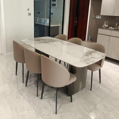 Bộ bàn ghế ăn mặt đá nhẹ sang trọng kết hợp căn hộ nhỏ nhà phòng khách hình chữ nhật bàn ăn bọc da màu kem bàn đảo gió bàn ăn