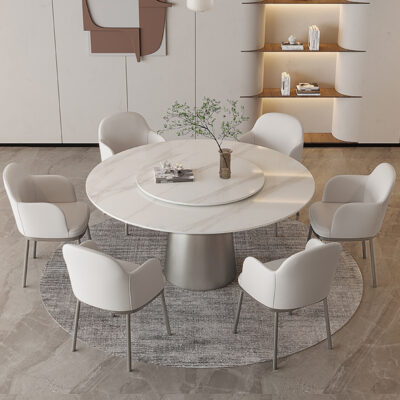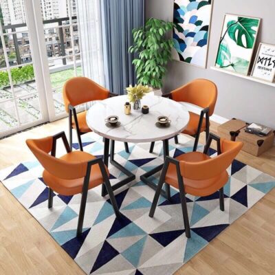 Bàn tròn phiến đá sáng tối giản của Ý với bàn xoay Bàn ăn tròn đơn giản hiện đại và ghế kết hợp căn hộ nhỏ nhà