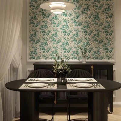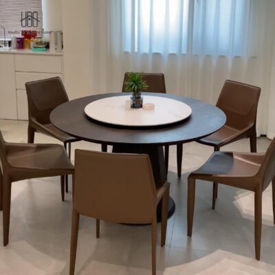 Sự kết hợp bàn ghế ăn bằng gỗ nguyên khối tối giản của Ý tại nhà căn hộ nhỏ bàn tròn xoay với bàn ăn đĩa đá bàn xoay