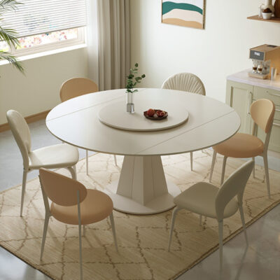 Bàn ăn phiến đá gấp kiểu kính thiên văn màu kem kiểu Pháp có thể thu vào vuông tròn gia đình nhỏ bàn ăn tròn xoay