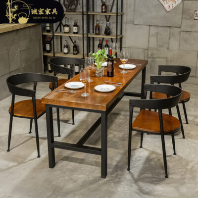 Chenghong Mỹ Bàn Ăn Gỗ Nguyên Chất Chắc Chắn Thương Mại Bàn Hình Chữ Nhật Kết Hợp Cửa Hàng Cà Phê Cửa Hàng Thịt Nướng Bàn Ghế