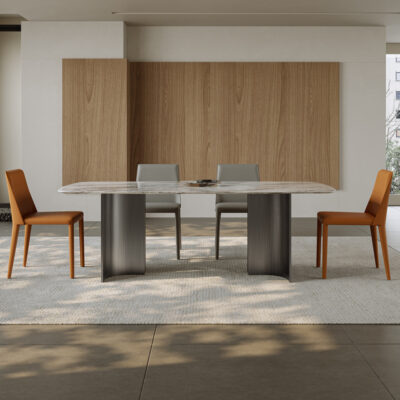 Bàn ăn đá phiến nhẹ sang trọng kiểu Ý Bắc Âu bàn ăn hình chữ nhật bằng đá sang trọng bằng thép không gỉ thiết kế kết hợp bàn ăn và ghế