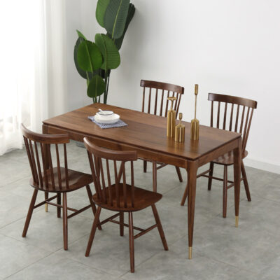 Bàn ăn gỗ óc chó màu đen kiểu Bắc Âu với chân ốp gỗ tròn Bàn ăn gỗ nguyên khối nội thất nhà hàng nhỏ hiện đại đơn giản