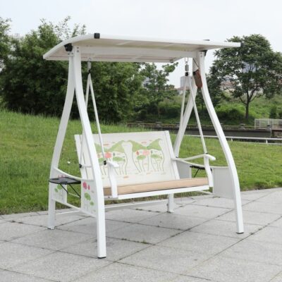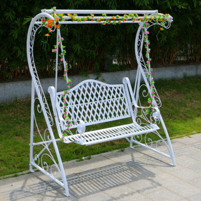Xích đu ngoài trời biệt thự sân vườn hợp kim nhôm đúc xích đu ba vị trí xích đu sắt trắng sáng tạo ngoài trời