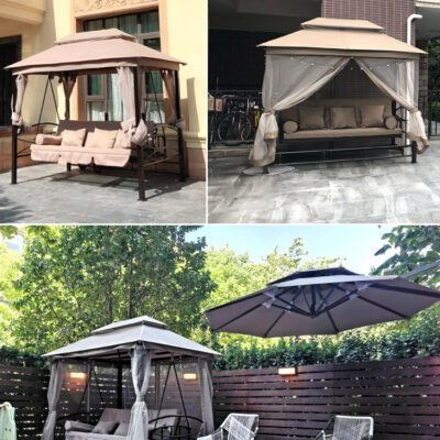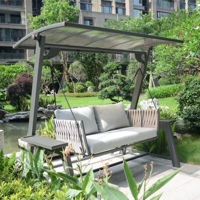 Xích Đu Ngoài Trời Sân Vườn Ban Công Ngoài Trời Chống Mưa Năng Lượng Mặt Trời Giả Gỗ Khung Nhôm Sun Panel Hình Hoa Đính Đá Xoay