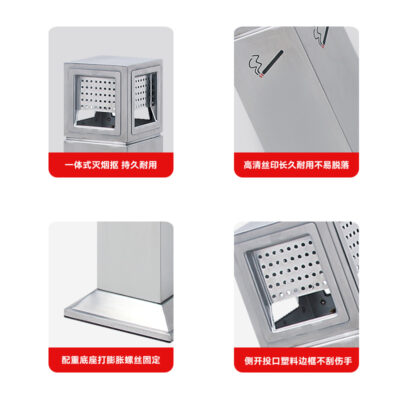 Sảnh khách sạn thùng rác inox thùng phân loại ngoài trời thẳng đứng có gạt tàn hành lang trung tâm mua sắm lối vào thang máy