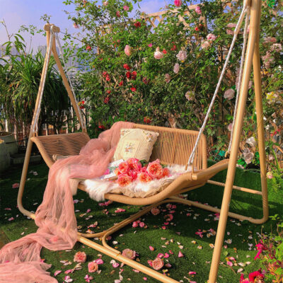 Xích đu ba đậu đỏ ngoài trời, ghế xích đu mây sân vườn, ghế treo ban công trong nhà, ghế bập bênh, ghế ngồi, xích đu sân vườn
