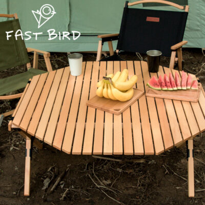 Speed Bird Cắm Trại Ngoài Trời Gỗ Hình Bát Giác Bàn Cuộn Trứng BBQ Jungle Bàn Gỗ Chắc Chắn Dã Ngoại Gian Hàng Bàn Gấp