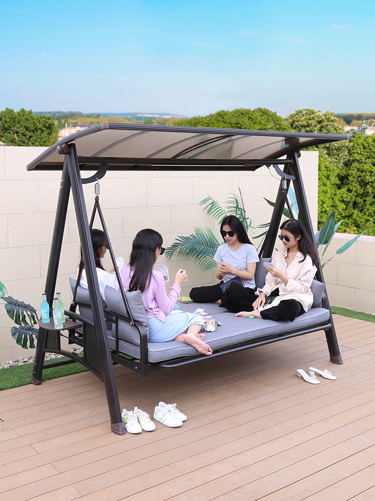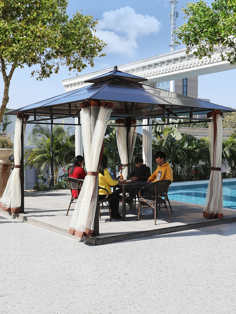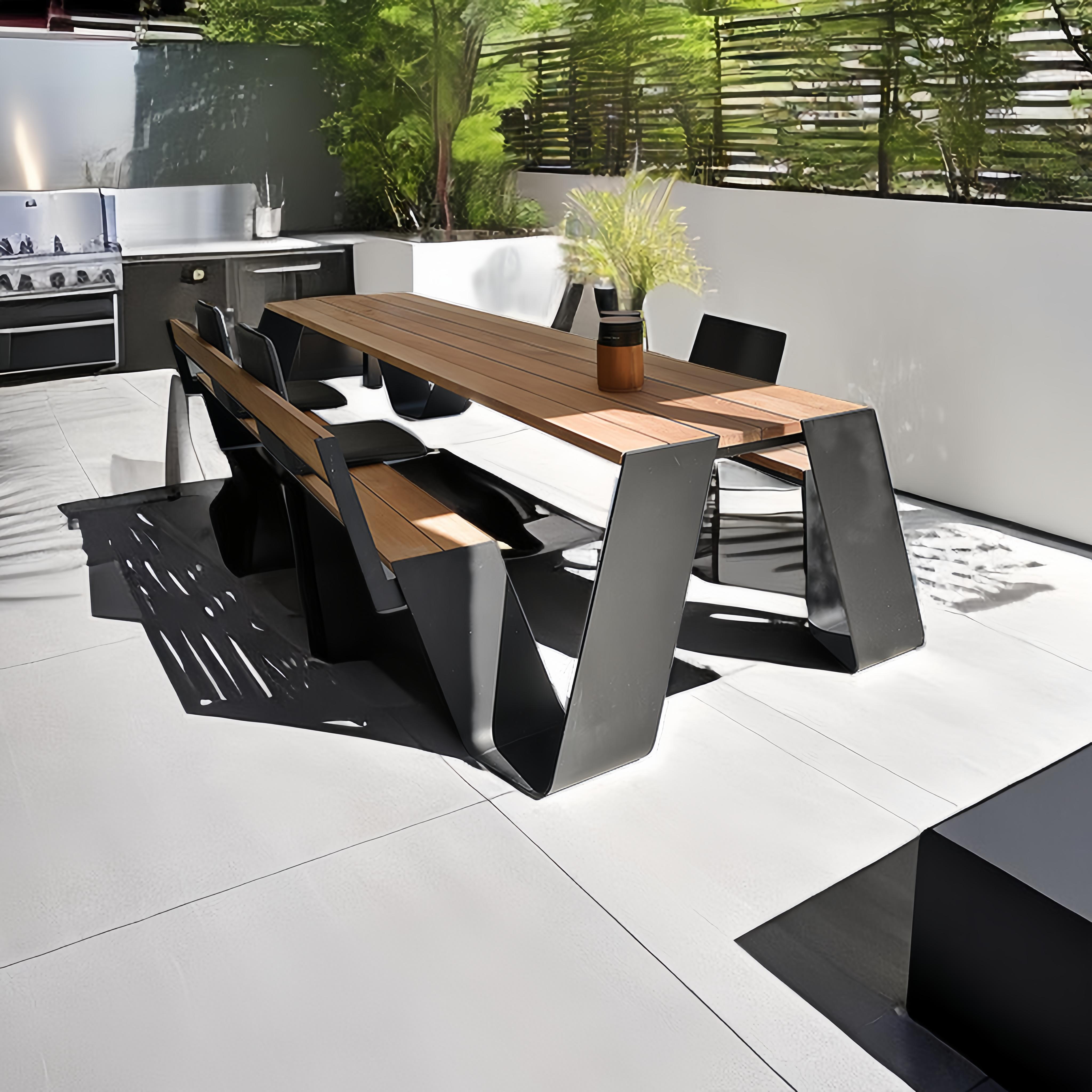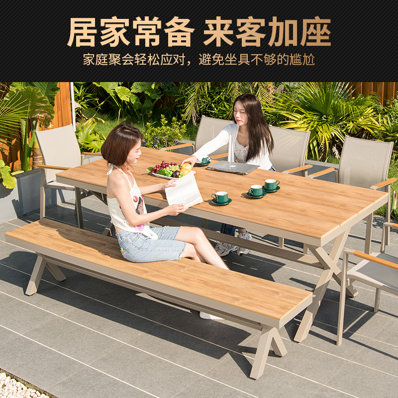 Bàn ghế sân vườn ngoài trời, nan gỗ kết hợp với chân nhôm đúc.