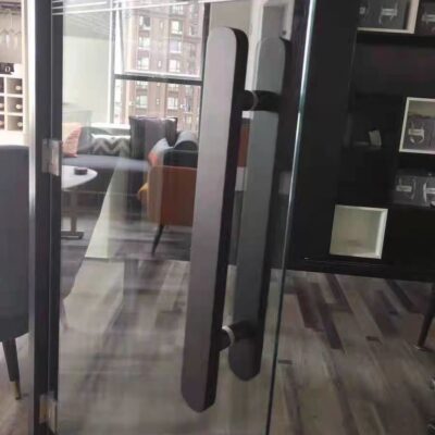 Tay nắm cửa kính ống vuông bằng thép không gỉ titan đen sơn chải uốn cong đơn tay cầm lớn phụ kiện kéo đẩy văn phòng mở đôi