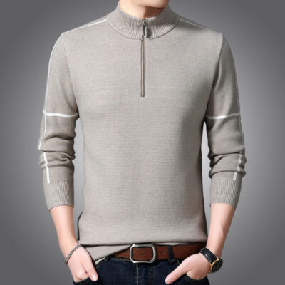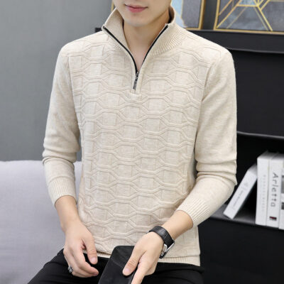 Áo Len Nam Mùa Đông Xu Hướng Dây Kéo Dệt Kim Nam Hở Cổ Ôm Đáy Áo Sơ Mi Đẹp Trai Mới Cổ Áo Đứng
