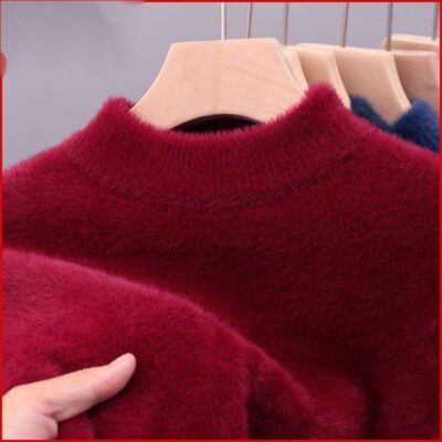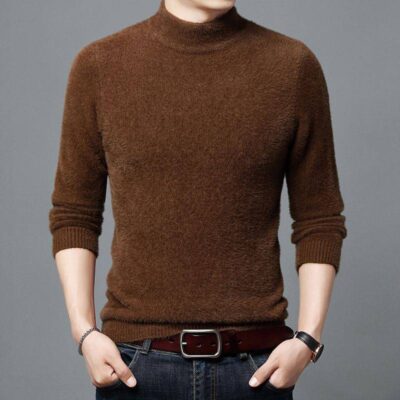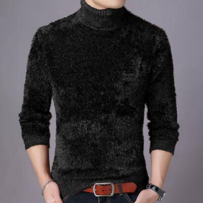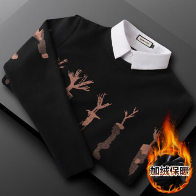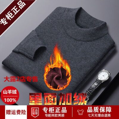 Quần Áo Nam Dày Ấm Nam Áo Len Nhung Chồn Trái Tim Ấm Áp Của Cha Quần Áo Nam Áo Len Cao Cổ Đáy Áo Sơ Mi