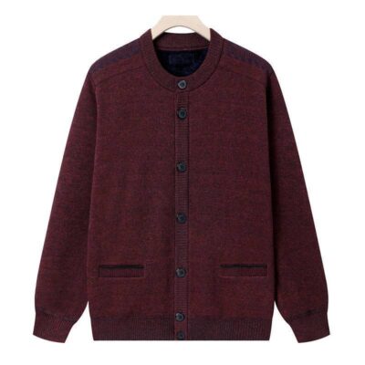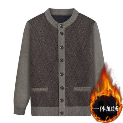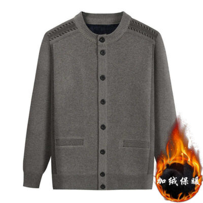 Áo len của bố cộng với nhung dày dặn của ông già áo len cardigan của ông nội quần áo ấm áo sơ mi nam trung niên và cao tuổi áo len nam cổ tròn