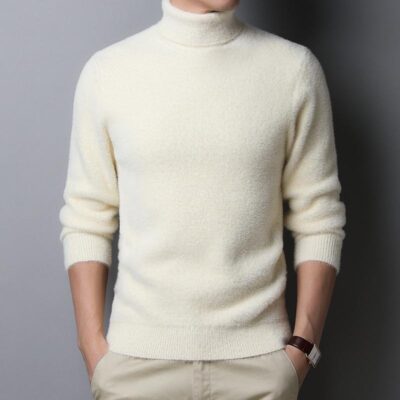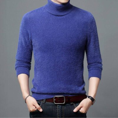 Áo len lông chồn nam cổ cao nửa đầu 22 mùa thu đông mới áo len dệt kim đáy dày áo sơ mi dòng ấm thanh niên quần áo nam