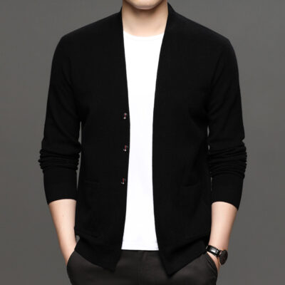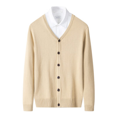 Mùa thu và mùa đông nam trẻ thường phù hợp với tất cả các trận đấu cardigan dệt kim dài tay áo khoác cotton nguyên chất mỏng vừa vặn áo khoác ngoài áo len nam áo choàng