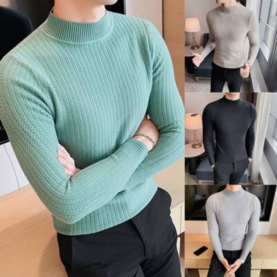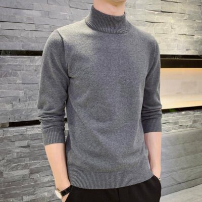 Áo Len Nam Xuân Thu Phong Cách Hàn Quốc Mỏng Cổ Cao Xoắn Áo Len Dệt Kim Đẹp Trai Áo Chui Đầu Học Sinh Đáy Áo Sơ Mi