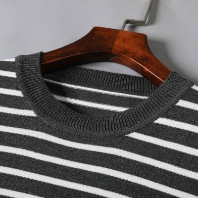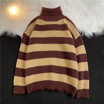 Áo len cao cổ sọc đen trắng nam mùa thu đông dày mềm mại kiểu dáng lười biếng áo len dệt kim áo khoác len thương hiệu hợp thời trang