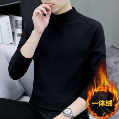 Áo len nửa cao cổ nam mùa thu đông dày giản dị phù hợp với tất cả các trận đấu dài tay áo len cổ giữa mỏng đẹp trai có lớp lót đáy áo sơ mi